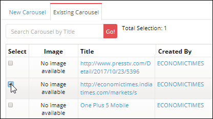 Select Carousel > Existing Carousel then select the ad(s) from the list.