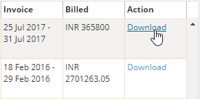 You can download the invoice for any time period by filtering the date range. In case you cannot generate any invoice, you can send an email to our customer support team.